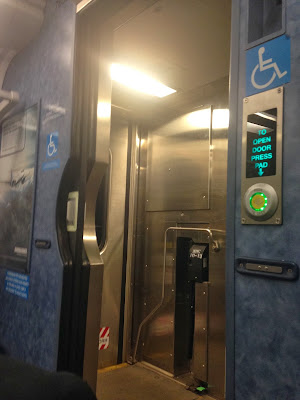 I was terrified that I was going the wrong way and I was even more terrified to have to lift all 100 pounds of my luggage over my head into the compartment, but THANK THE LORD I was able to wheel my belongings into the handicap seats and pop a squat.